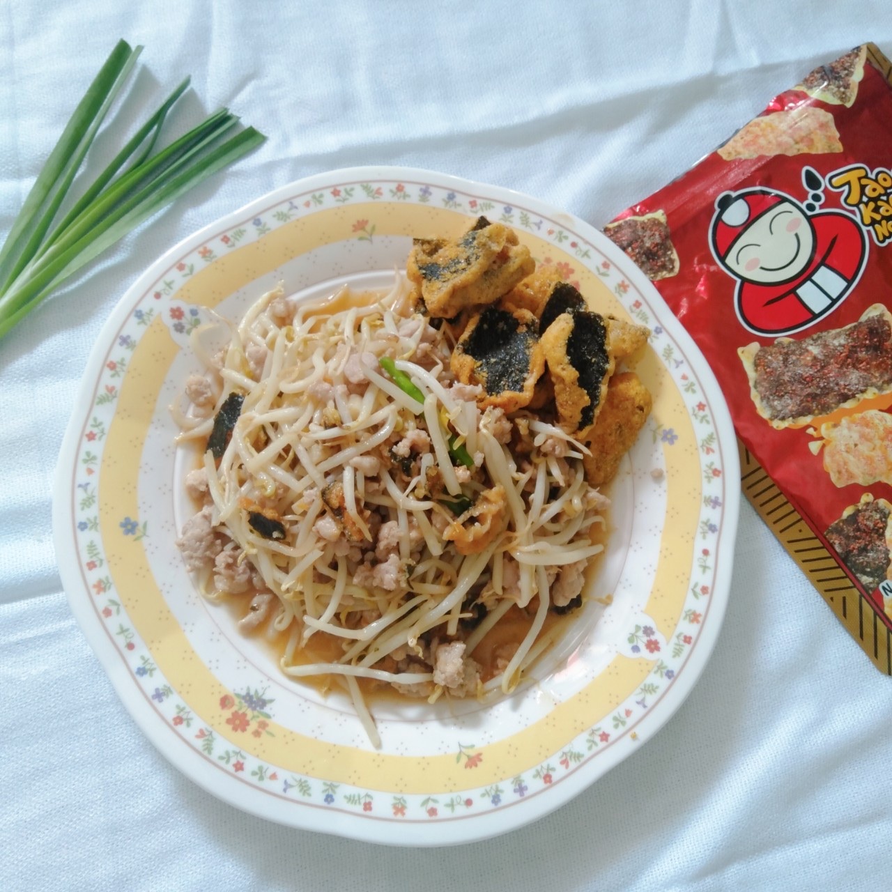 နုတ်နုတ်စင်းထားသော ဝက်သားနဲ့ ပဲပင်ပေါက်ကြော်